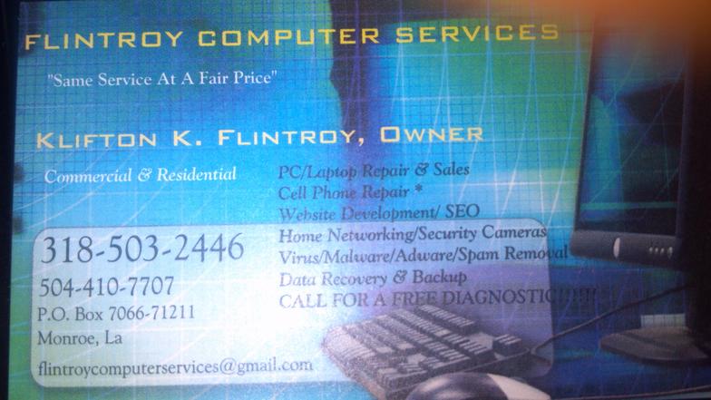 FlintroyComputerServices llc is family-owned and operated right here in Monroe, La. Since our company opened its doors in 2006, we’ve treated every customer like they were a part of our family. Other companies may offer similar services, but our services are the best, and come with a personal touch at a fair price.